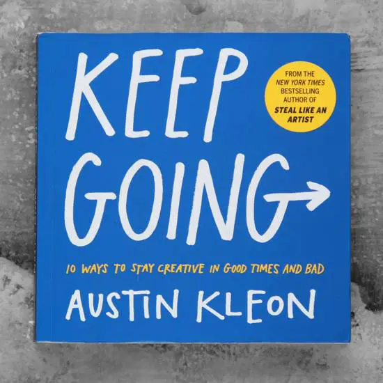 Keep Going es el tercer libro de Austin Kleon con el mismo formato que sus antecesores Steal like an artist y Show your work. Todos pensados bajo el concepto de fomentar la creatividad y la originalidad.